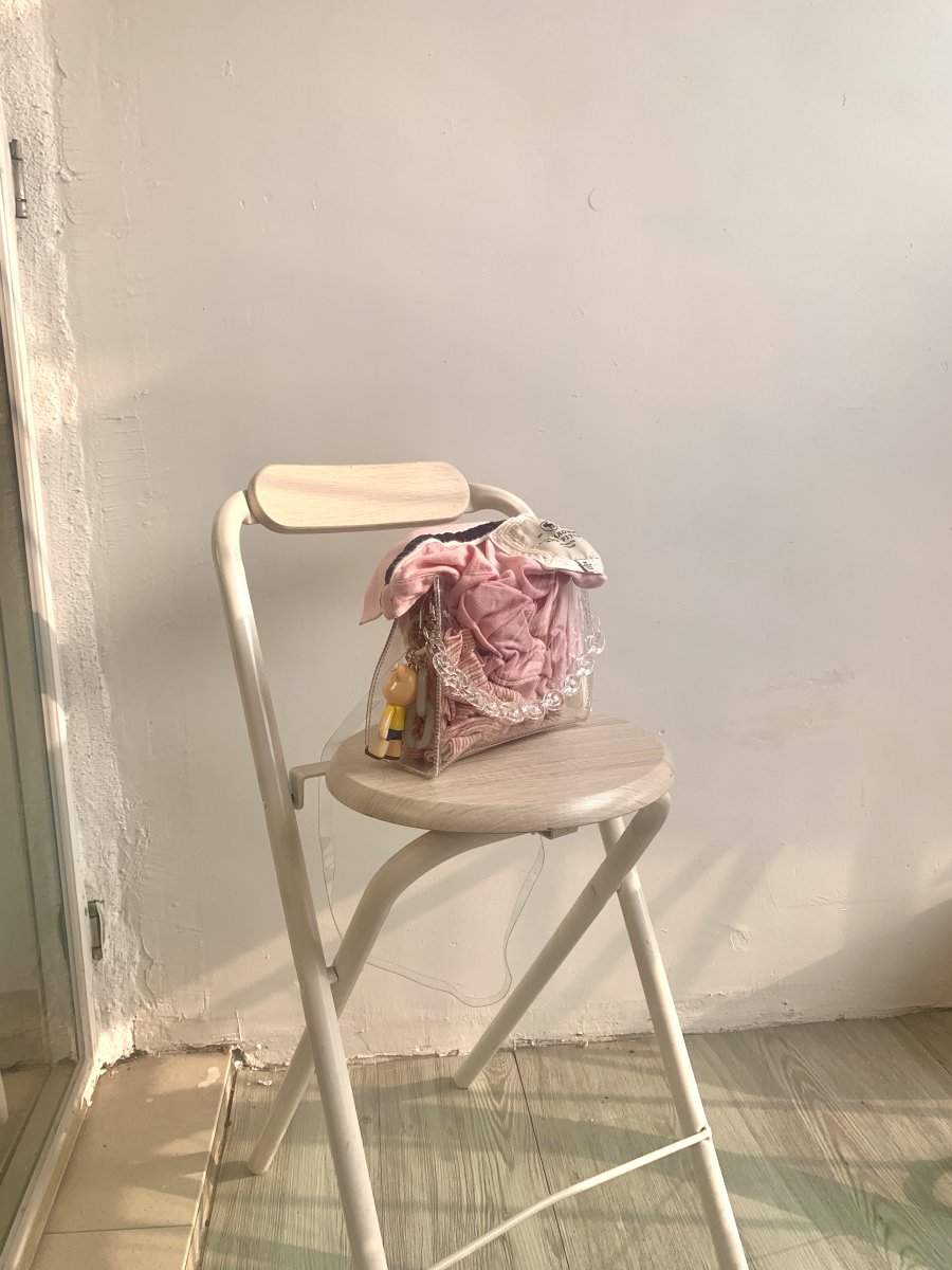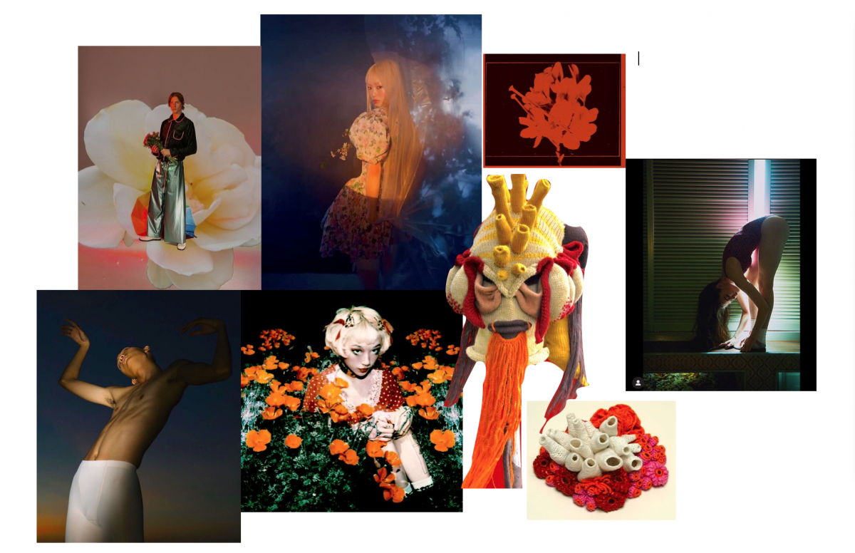 My initial designs consist of muted colors and abstract shapes inspired by knitted coral reefs and the works of Wang and Soderström. And its silhouettes taken by collaging objects that reminded me of my childhood.